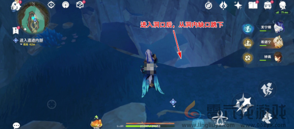 4、最后就会看到下方的缺口,玩家只需跳入里面就会到达遗迹内部。