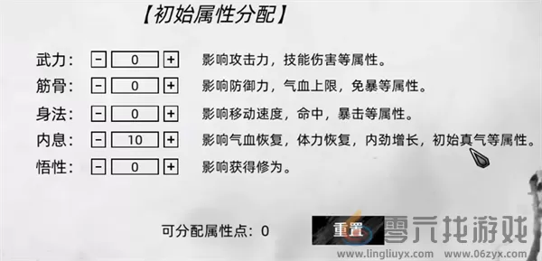 刀剑江湖路初始属性分配游戏中角色初始是有10点属性值可以进行分配,在选择好武学资质即可进行分配加点。