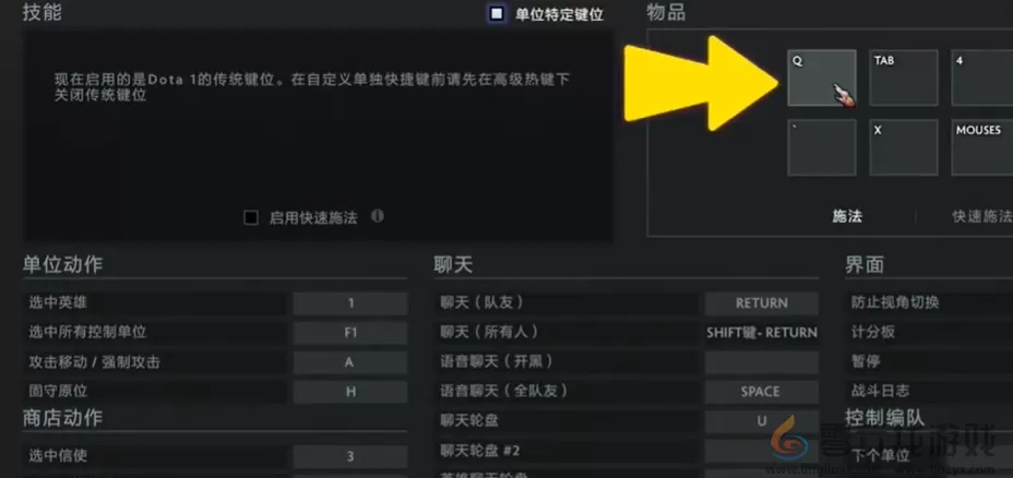dota2物品栏Q键用不了怎么办1、使用传统键位的玩家有时候会出现物品栏q键无法使用的问题。
