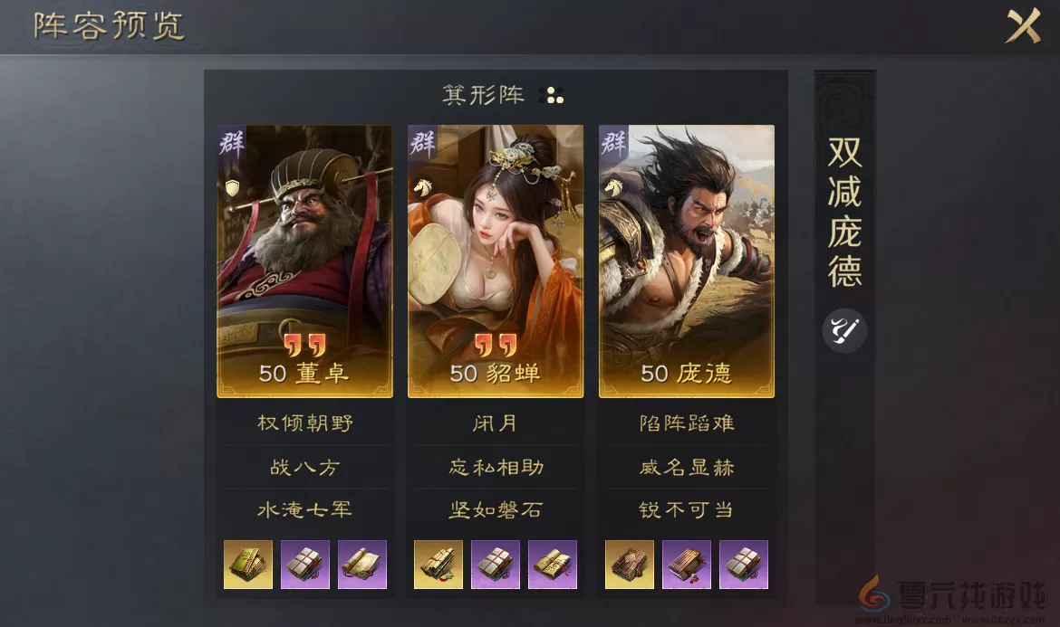 三国谋定天下S1赛季阵容推荐1.貂蝉+董卓+庞德该阵容主要围绕双重降低统率效果展开。