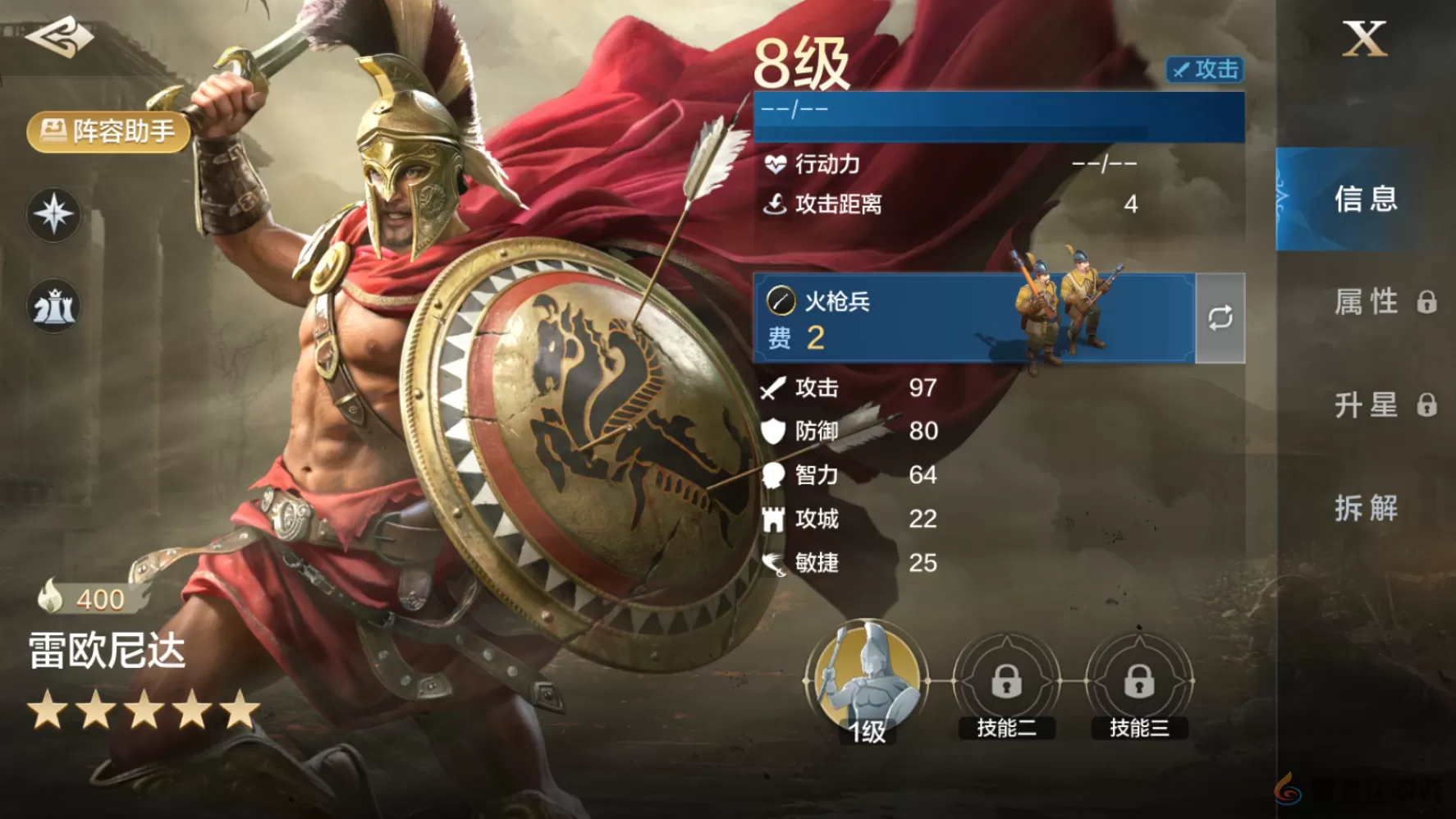 雷欧尼达作为目前新手保镖,初始面板十分出色,攻击97,防御80。世界启元雷欧尼达使用思路他和征战王、...